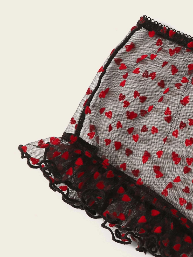 Red Heart Padded Lingerie Set with Polka Dot Mesh